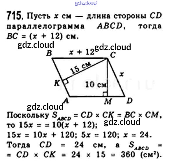 Ответ на задание 715 Учебник Геометрия за 8 (восьмой) класс Мерзляк, Полонский, Якир Алгоритм успеха 2015