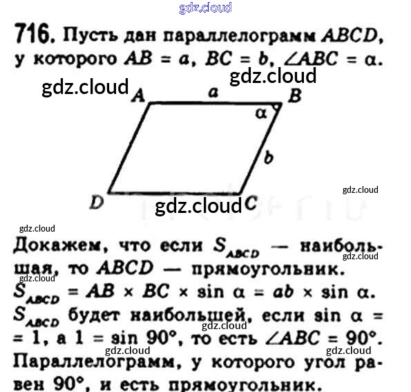 Ответ на задание 716 Учебник Геометрия за 8 (восьмой) класс Мерзляк, Полонский, Якир Алгоритм успеха 2015