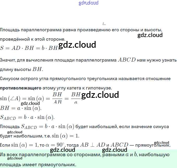 § 21. Площадь параллелограмма Ответы. Глава 4. Многоугольники. Площадь многоугольника по Геометрии 8 класс Учебник Мерзляк Алгоритм успеха Вентана-граф
