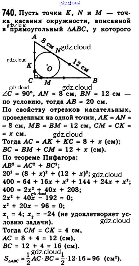 Ответ на задание 740 Учебник Геометрия за 8 (восьмой) класс Мерзляк, Полонский, Якир Алгоритм успеха 2015