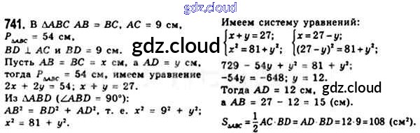 Ответ на задание 741 Учебник Геометрия за 8 (восьмой) класс Мерзляк, Полонский, Якир Алгоритм успеха 2015