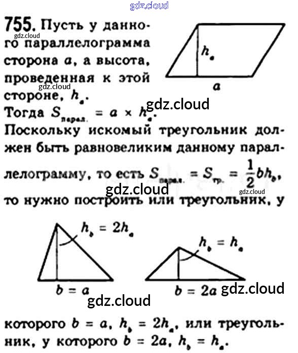 Ответ на задание 755 Учебник Геометрия за 8 (восьмой) класс Мерзляк, Полонский, Якир Алгоритм успеха 2015