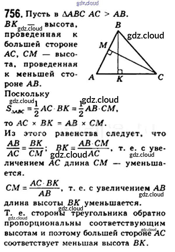 Ответ на задание 756 Учебник Геометрия за 8 (восьмой) класс Мерзляк, Полонский, Якир Алгоритм успеха 2015