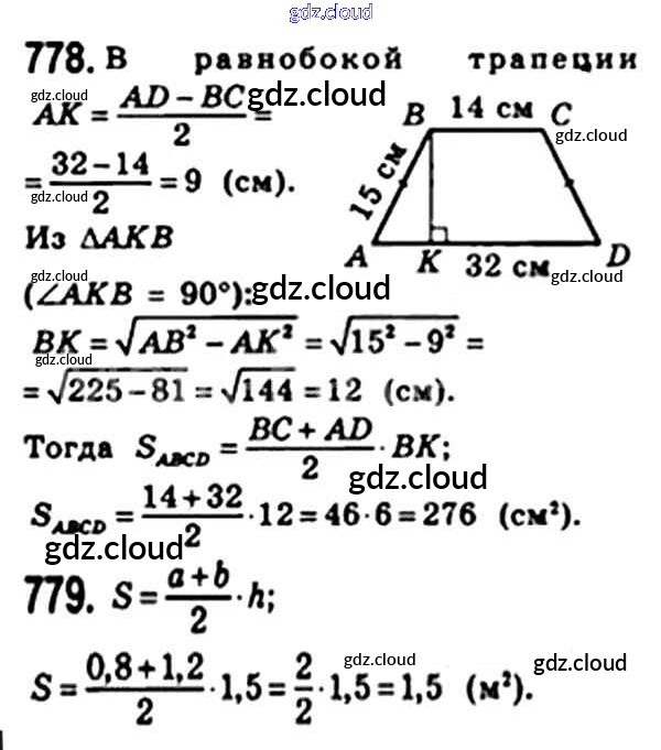 Ответ на задание 778 Учебник Геометрия за 8 (восьмой) класс Мерзляк, Полонский, Якир Алгоритм успеха 2015