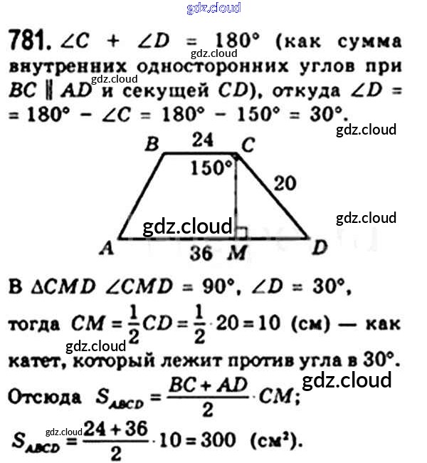 Ответ на задание 781 Учебник Геометрия за 8 (восьмой) класс Мерзляк, Полонский, Якир Алгоритм успеха 2015