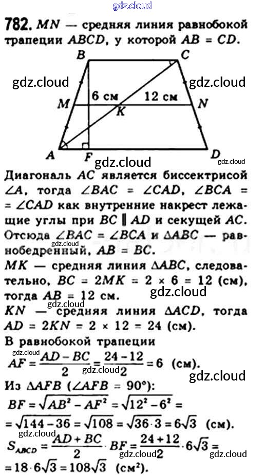 Ответ на задание 782 Учебник Геометрия за 8 (восьмой) класс Мерзляк, Полонский, Якир Алгоритм успеха 2015