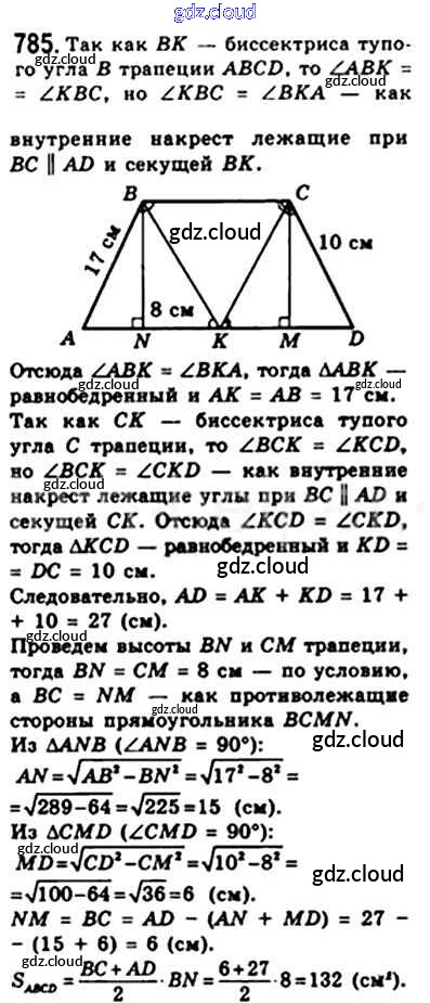 Ответ на задание 785 Учебник Геометрия за 8 (восьмой) класс Мерзляк, Полонский, Якир Алгоритм успеха 2015