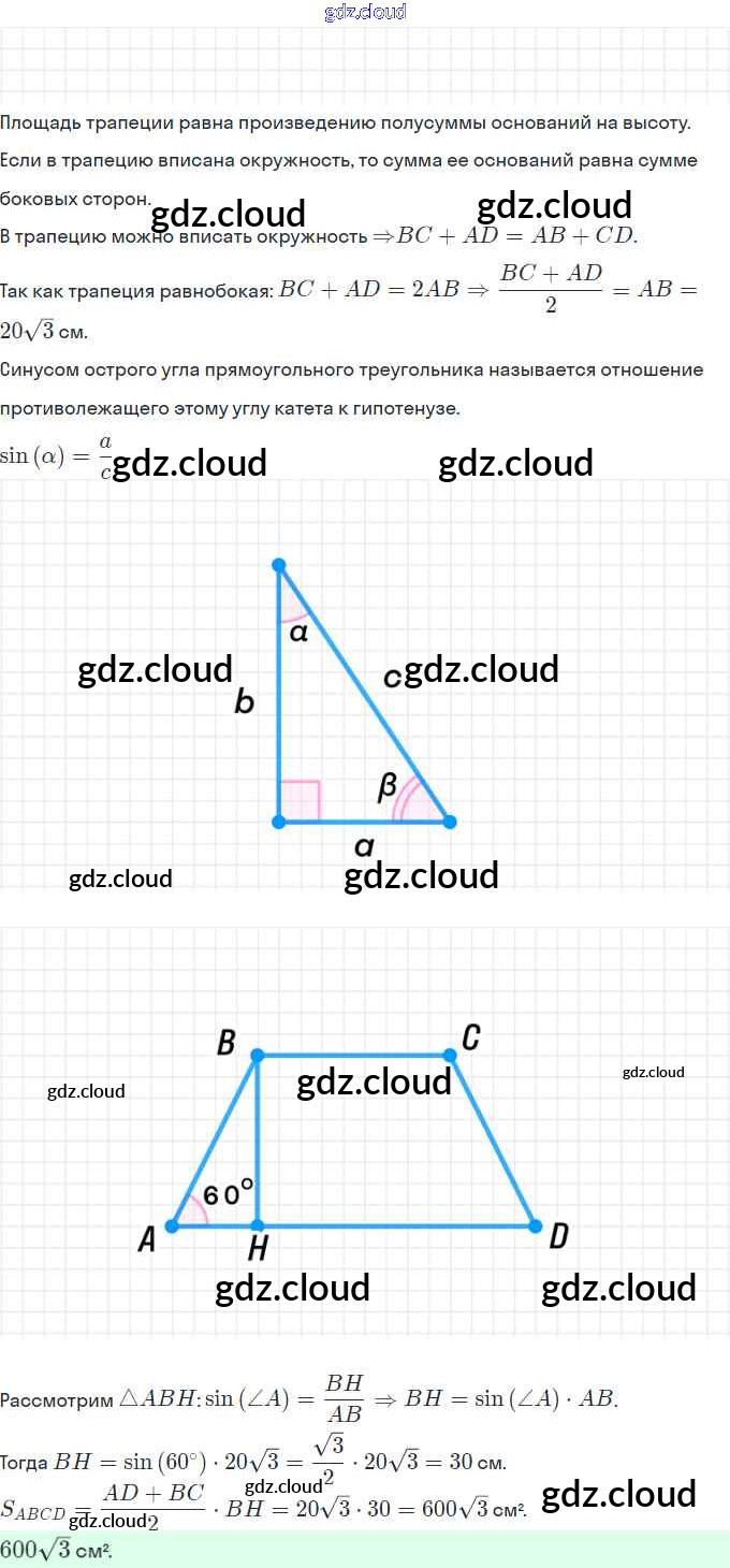 § 23. Площадь трапеции Ответы. Глава 4. Многоугольники. Площадь многоугольника по Геометрии 8 класс Учебник Мерзляк Алгоритм успеха Вентана-граф