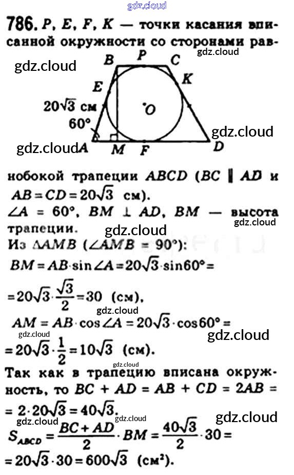 Ответ на задание 786 Учебник Геометрия за 8 (восьмой) класс Мерзляк, Полонский, Якир Алгоритм успеха 2015