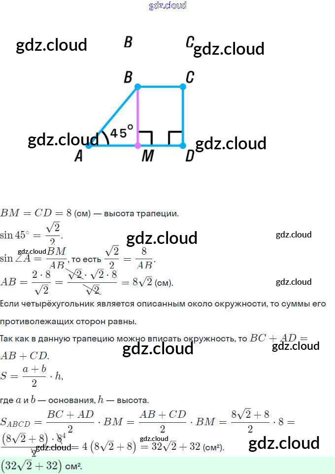 § 23. Площадь трапеции Ответы. Глава 4. Многоугольники. Площадь многоугольника по Геометрии 8 класс Учебник Мерзляк Алгоритм успеха Вентана-граф