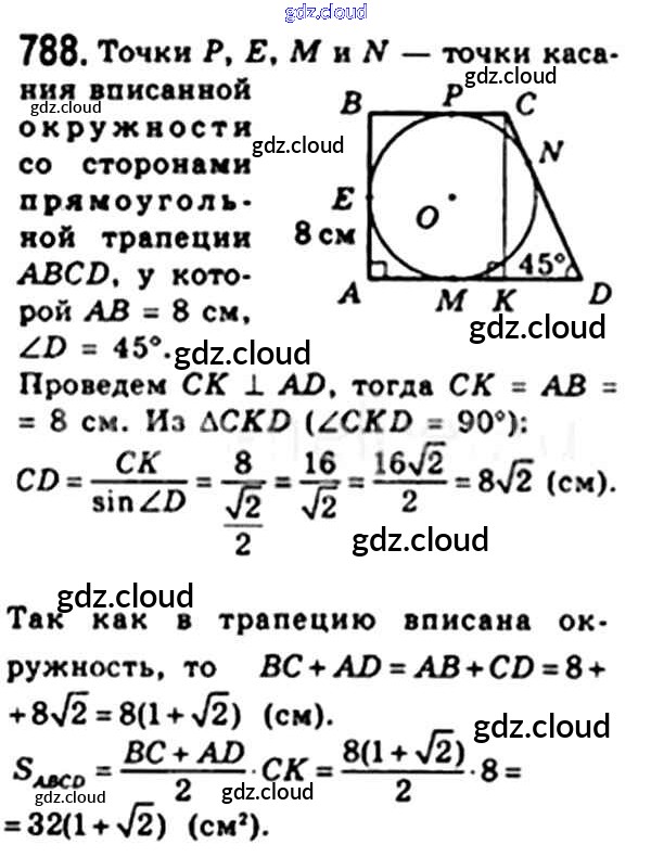 Ответ на задание 788 Учебник Геометрия за 8 (восьмой) класс Мерзляк, Полонский, Якир Алгоритм успеха 2015