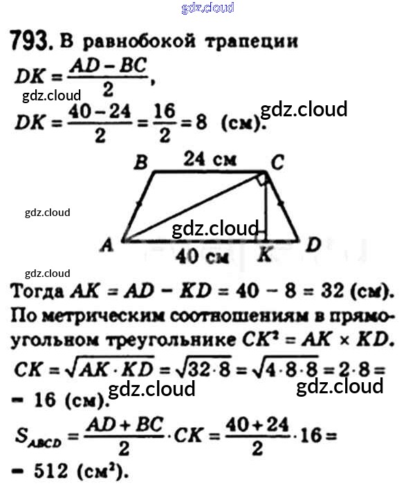 Ответ на задание 793 Учебник Геометрия за 8 (восьмой) класс Мерзляк, Полонский, Якир Алгоритм успеха 2015