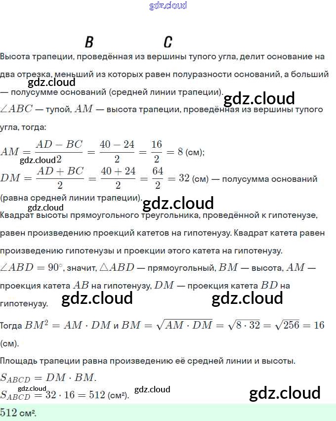 § 23. Площадь трапеции Ответы. Глава 4. Многоугольники. Площадь многоугольника по Геометрии 8 класс Учебник Мерзляк Алгоритм успеха Вентана-граф