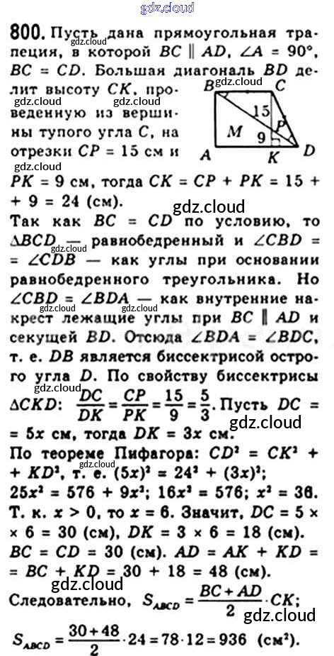 Ответ на задание 800 Учебник Геометрия за 8 (восьмой) класс Мерзляк, Полонский, Якир Алгоритм успеха 2015
