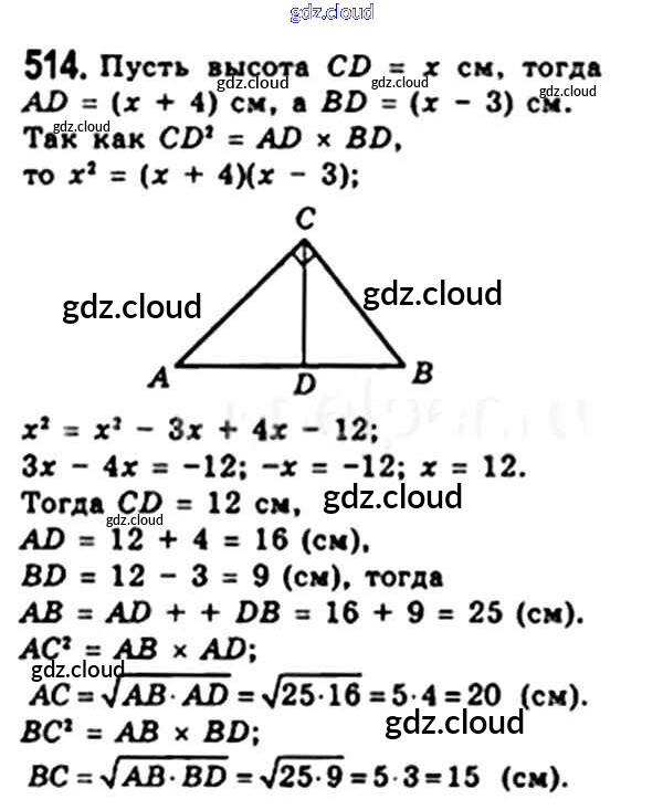 Ответ на задание 514 Учебник Геометрия за 8 (восьмой) класс Мерзляк, Полонский, Якир Алгоритм успеха 2015