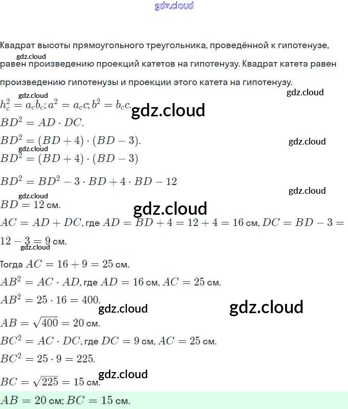§ 15. Метрические соотношения в прямоугольном треугольнике Ответы. Глава 3. Решение прямоугольных треугольников по Геометрии 8 класс Учебник Мерзляк Алгоритм успеха Вентана-граф