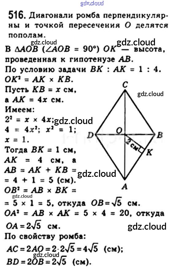 Ответ на задание 516 Учебник Геометрия за 8 (восьмой) класс Мерзляк, Полонский, Якир Алгоритм успеха 2015