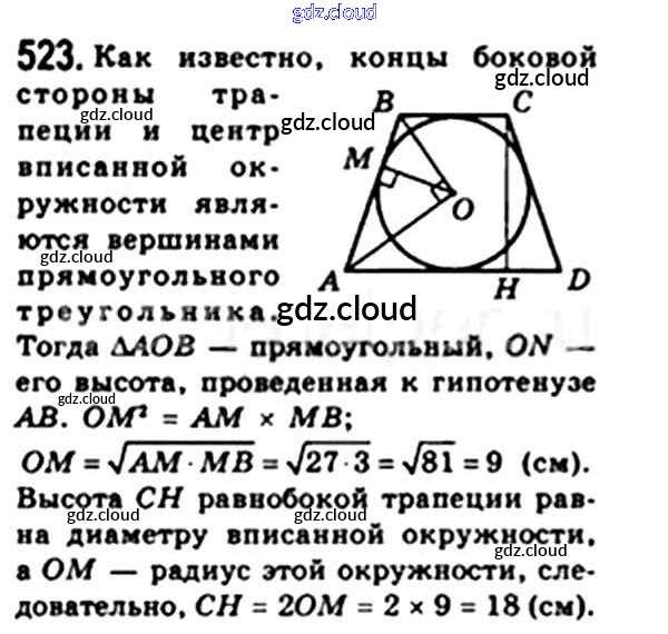 Ответ на задание 523 Учебник Геометрия за 8 (восьмой) класс Мерзляк, Полонский, Якир Алгоритм успеха 2015