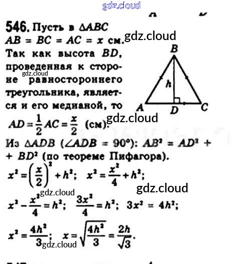 Ответ на задание 546 Учебник Геометрия за 8 (восьмой) класс Мерзляк, Полонский, Якир Алгоритм успеха 2015