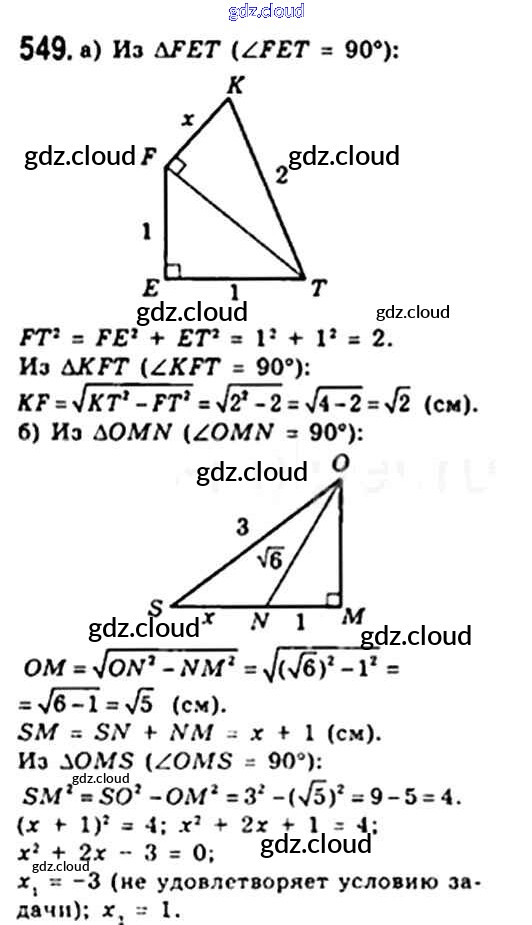 Ответ на задание 549 Учебник Геометрия за 8 (восьмой) класс Мерзляк, Полонский, Якир Алгоритм успеха 2015