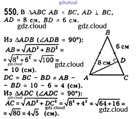 Ответ на задание 550 Учебник Геометрия за 8 (восьмой) класс Мерзляк, Полонский, Якир Алгоритм успеха 2015