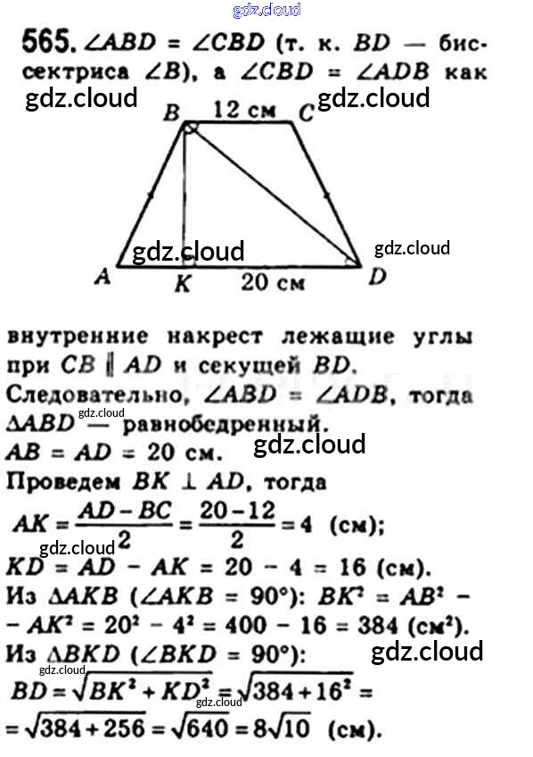 Ответ на задание 565 Учебник Геометрия за 8 (восьмой) класс Мерзляк, Полонский, Якир Алгоритм успеха 2015