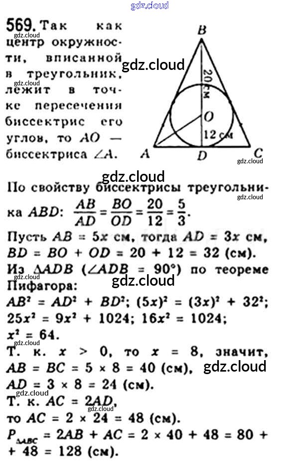 Ответ на задание 569 Учебник Геометрия за 8 (восьмой) класс Мерзляк, Полонский, Якир Алгоритм успеха 2015