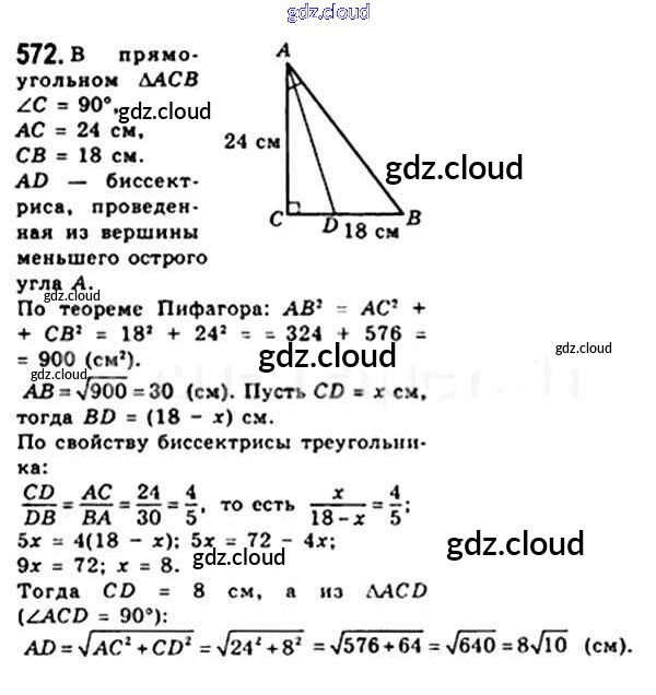 Ответ на задание 572 Учебник Геометрия за 8 (восьмой) класс Мерзляк, Полонский, Якир Алгоритм успеха 2015