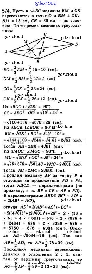 Ответ на задание 574 Учебник Геометрия за 8 (восьмой) класс Мерзляк, Полонский, Якир Алгоритм успеха 2015