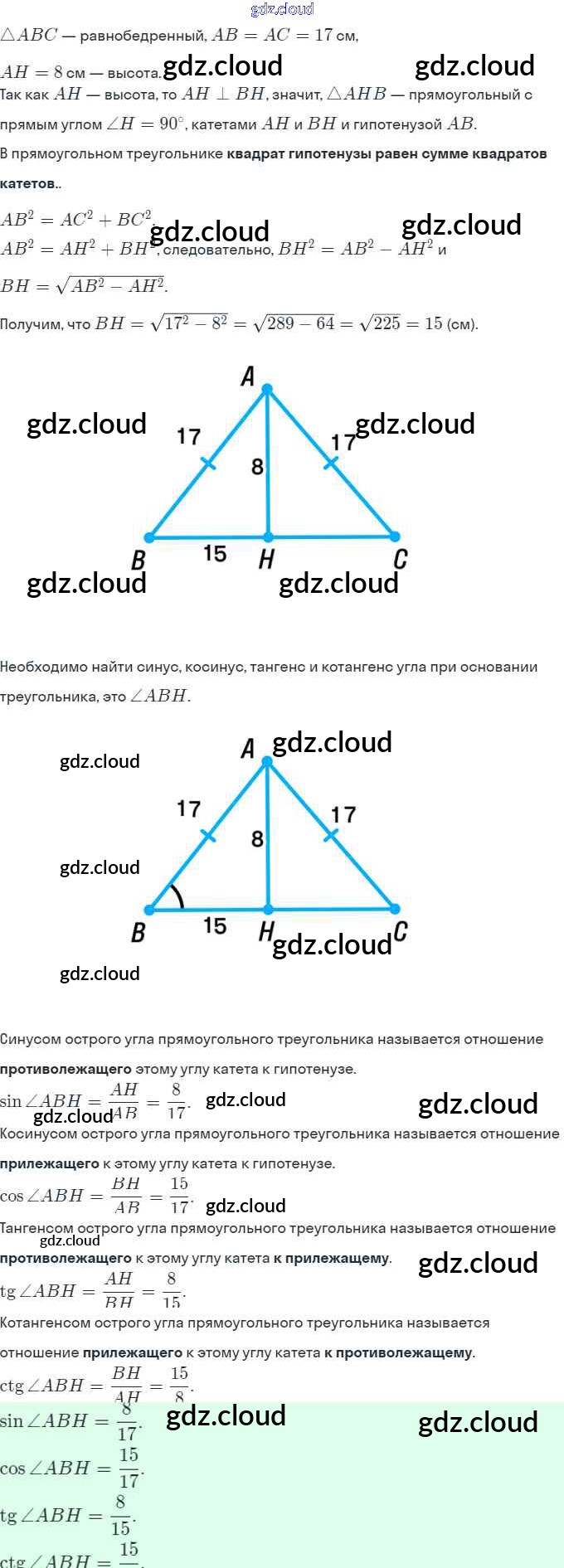 § 17. Тригонометрические функции острого угла прямоугольного треугольника Ответы. Глава 3. Решение прямоугольных треугольников по Геометрии 8 класс Учебник Мерзляк Алгоритм успеха Вентана-граф