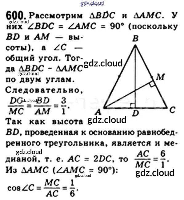 Ответ на задание 600 Учебник Геометрия за 8 (восьмой) класс Мерзляк, Полонский, Якир Алгоритм успеха 2015