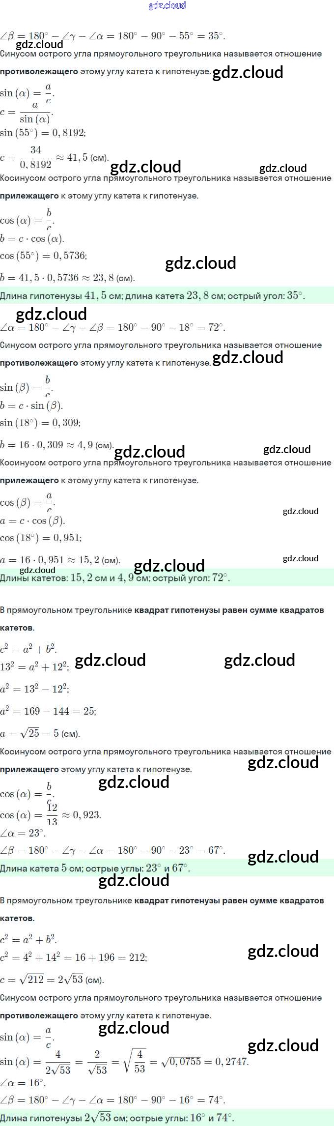 § 18. Решение прямоугольных треугольников Ответы. Глава 3. Решение прямоугольных треугольников по Геометрии 8 класс Учебник Мерзляк Алгоритм успеха Вентана-граф
