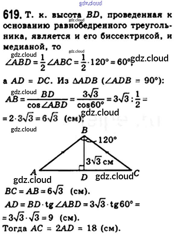 Ответ на задание 619 Учебник Геометрия за 8 (восьмой) класс Мерзляк, Полонский, Якир Алгоритм успеха 2015