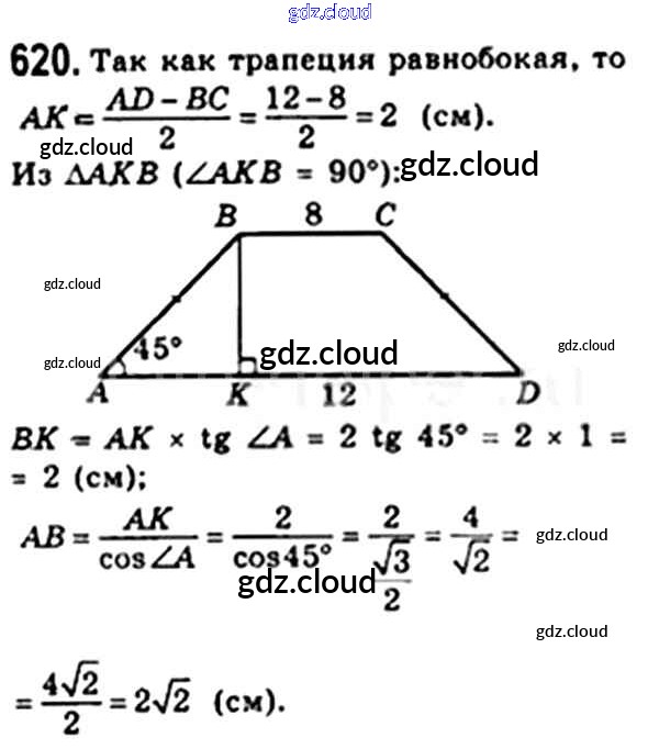 Ответ на задание 620 Учебник Геометрия за 8 (восьмой) класс Мерзляк, Полонский, Якир Алгоритм успеха 2015