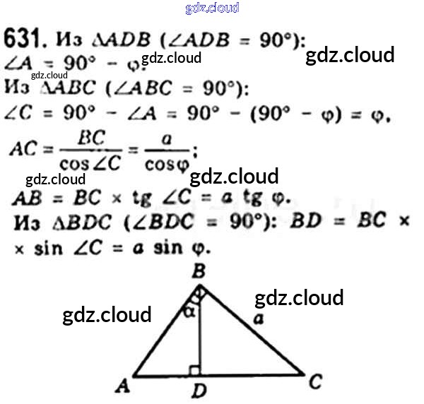 Ответ на задание 631 Учебник Геометрия за 8 (восьмой) класс Мерзляк, Полонский, Якир Алгоритм успеха 2015