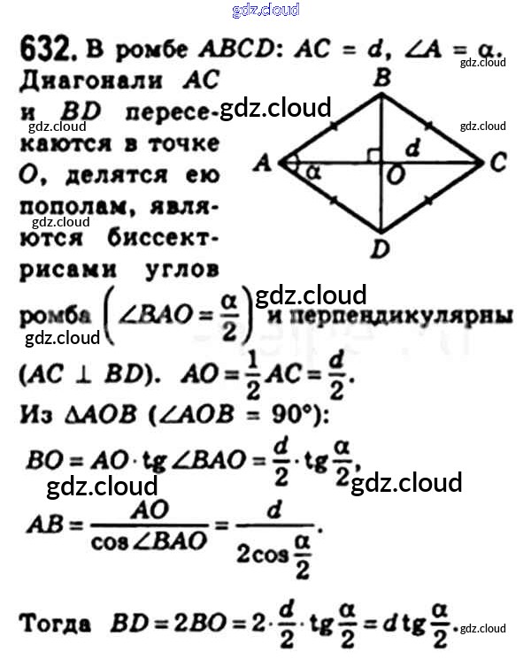 Ответ на задание 632 Учебник Геометрия за 8 (восьмой) класс Мерзляк, Полонский, Якир Алгоритм успеха 2015