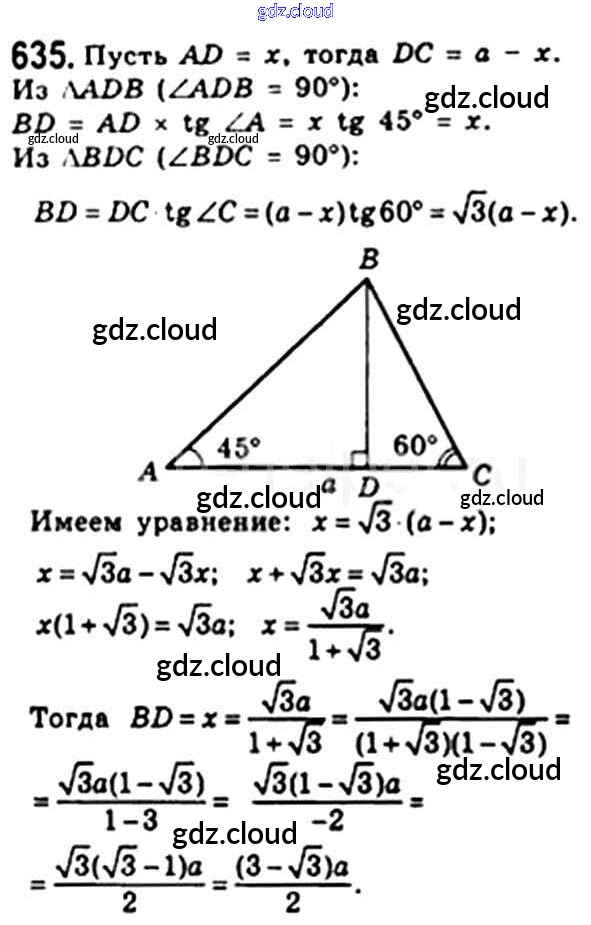 Ответ на задание 635 Учебник Геометрия за 8 (восьмой) класс Мерзляк, Полонский, Якир Алгоритм успеха 2015