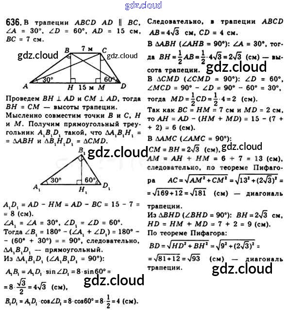 Ответ на задание 636 Учебник Геометрия за 8 (восьмой) класс Мерзляк, Полонский, Якир Алгоритм успеха 2015