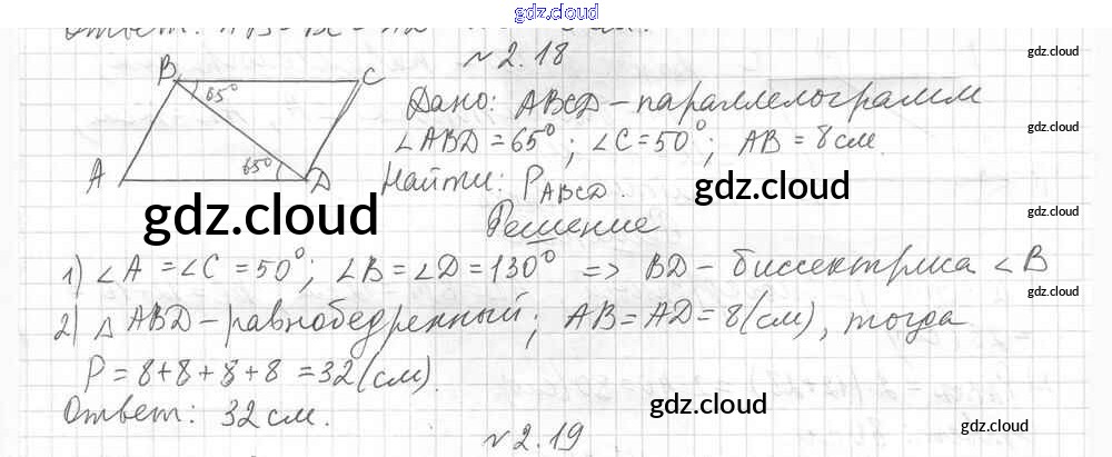 § 2. Параллелограмм и его свойства Ответы к Главе 1. Многоугольники. Четырехугольники по Геометрии 8 класс Учебник Мерзляк Алгоритм успеха Углубленный уровень Вентана-граф