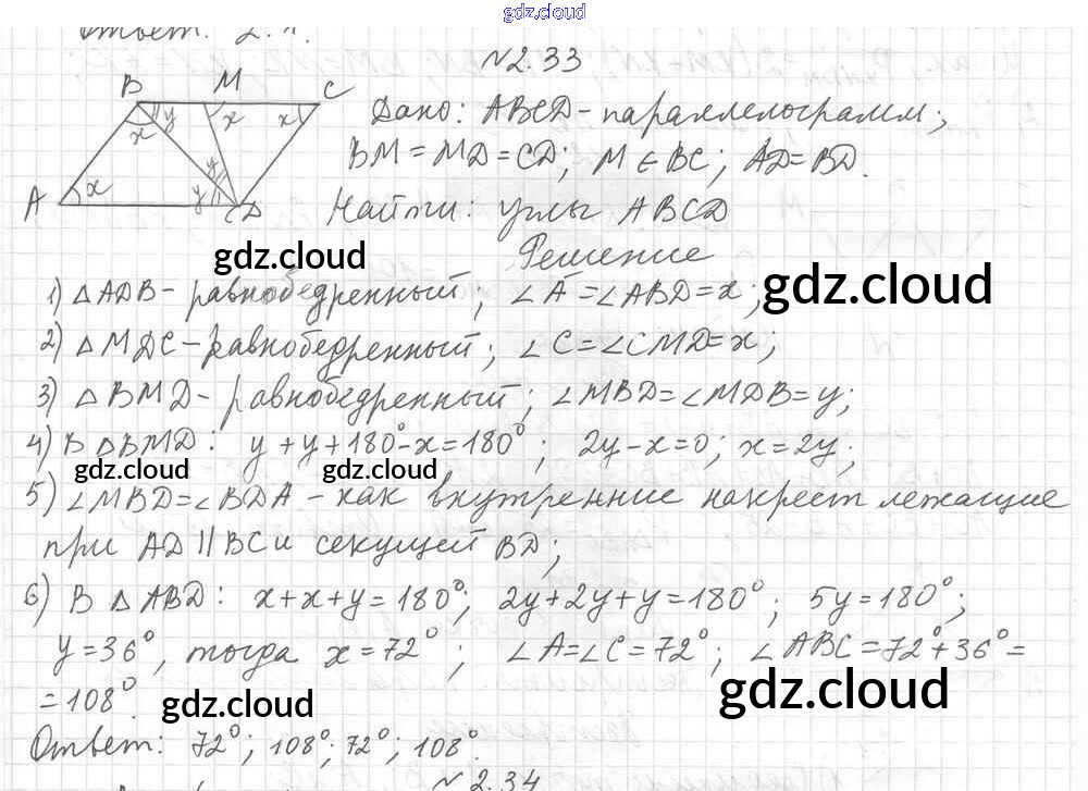 Ответ на задание 33 Учебник Геометрия за 8 (восьмой) класс Мерзляк, Поляков Алгоритм успеха Углубленный уровень 2020