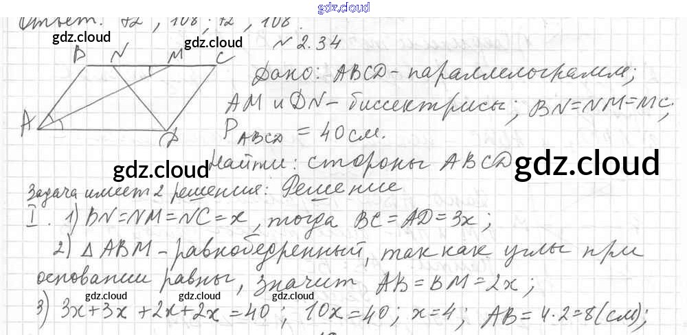 Ответ на задание 34 Учебник Геометрия за 8 (восьмой) класс Мерзляк, Поляков Алгоритм успеха Углубленный уровень 2020