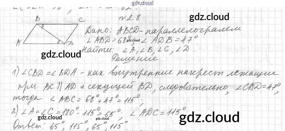 § 2. Параллелограмм и его свойства Ответы к Главе 1. Многоугольники. Четырехугольники по Геометрии 8 класс Учебник Мерзляк Алгоритм успеха Углубленный уровень Вентана-граф