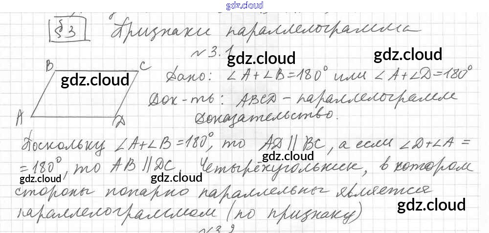 § 3. Признаки параллелограмма Ответы к Главе 1. Многоугольники. Четырехугольники по Геометрии 8 класс Учебник Мерзляк Алгоритм успеха Углубленный уровень Вентана-граф