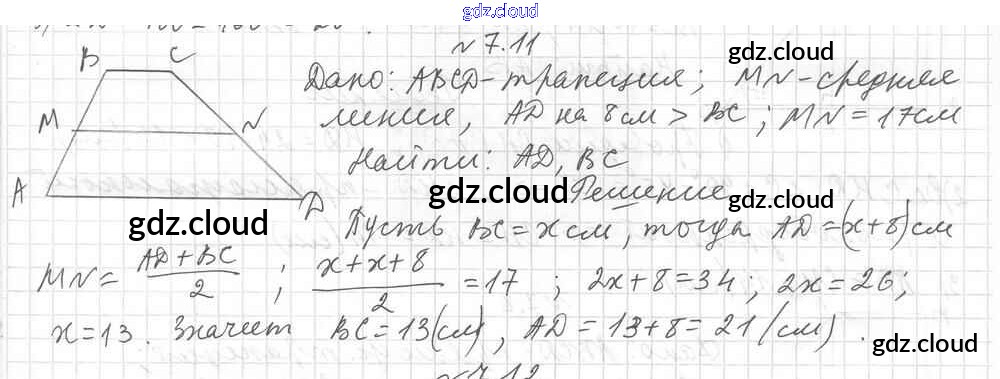§ 7. Трапеция Ответы к Главе 1. Многоугольники. Четырехугольники по Геометрии 8 класс Учебник Мерзляк Алгоритм успеха Углубленный уровень Вентана-граф