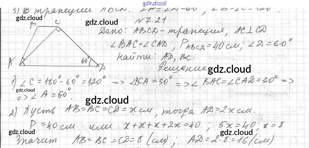 § 7. Трапеция Ответы к Главе 1. Многоугольники. Четырехугольники по Геометрии 8 класс Учебник Мерзляк Алгоритм успеха Углубленный уровень Вентана-граф