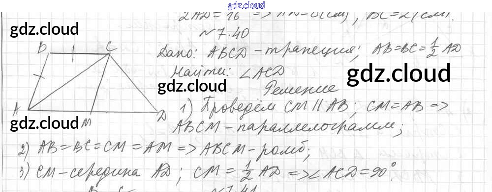 Ответ на задание 40 Учебник Геометрия за 8 (восьмой) класс Мерзляк, Поляков Алгоритм успеха Углубленный уровень 2020