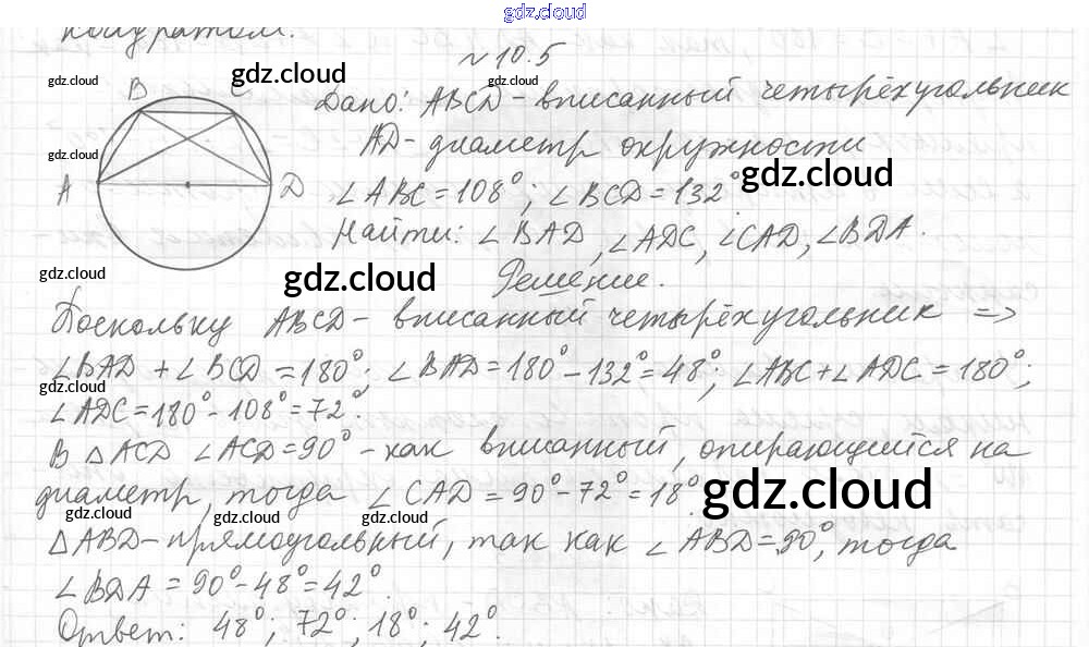 § 10. Вписанные четырехугольники Ответы к Главе 2. Вписанные и описанные четырехугольники по Геометрии 8 класс Учебник Мерзляк Алгоритм успеха Углубленный уровень Вентана-граф