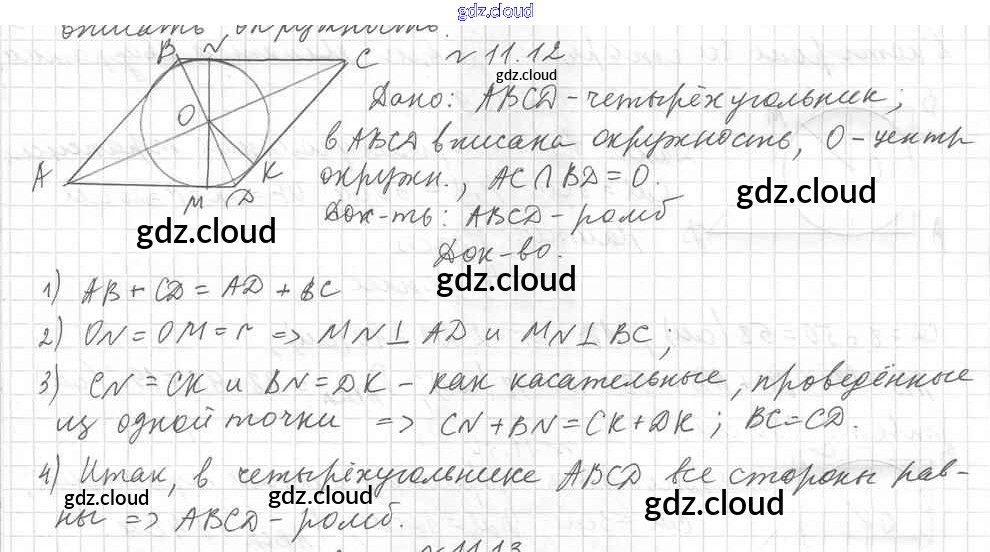 § 11. Описанные четырехугольники Ответы к Главе 2. Вписанные и описанные четырехугольники по Геометрии 8 класс Учебник Мерзляк Алгоритм успеха Углубленный уровень Вентана-граф