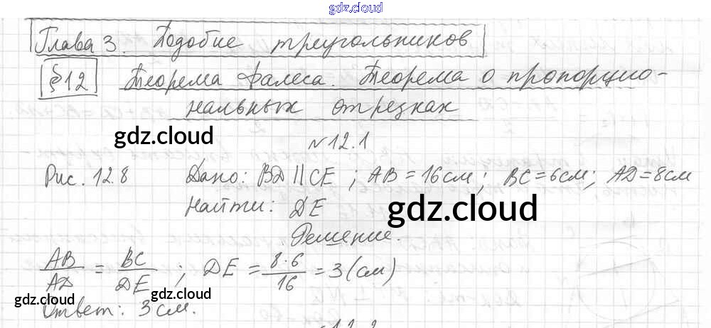§ 12. Теорема Фалеса Ответы к Главе 3. Подобие треугольников по Геометрии 8 класс Учебник Мерзляк Алгоритм успеха Углубленный уровень Вентана-граф