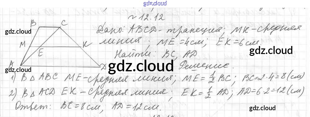 Ответ на задание 12 Учебник Геометрия за 8 (восьмой) класс Мерзляк, Поляков Алгоритм успеха Углубленный уровень 2020